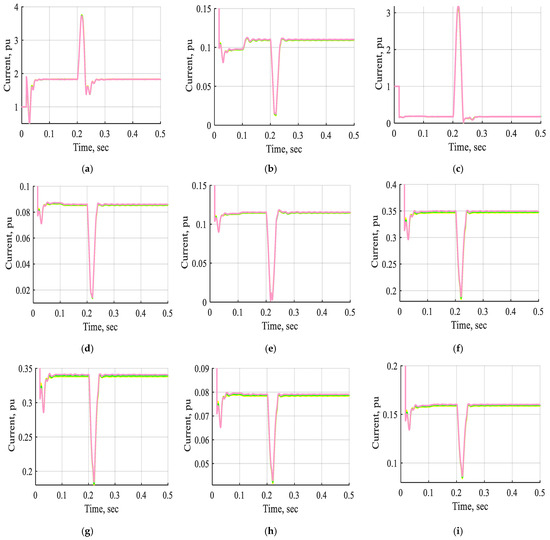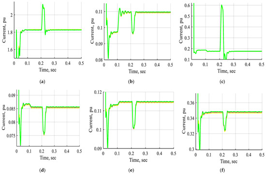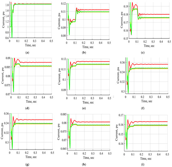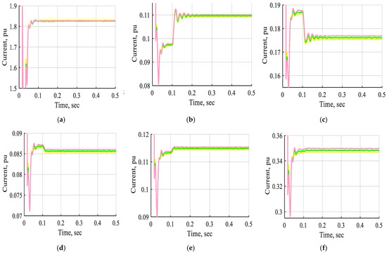 Figure 28 and Figure 29 display the voltage and current waveforms of bus B1 to bus B11 without STATCOM, with one STATCOM unit and two STATCOM units coordinated to the ANFIS controller under a three-line-to-ground fault inserted near bus B3. These waveforms demonstrate that the voltage and current are changed comprehensively in the period from t = 0.2 s to 0.21 s through a three-line-to-ground fault near bus B3. These Figs indicate that the voltage and current waveforms of bus B1 to bus B11, with a three-line-to-ground fault near bus B3 using two STATCOM units based on the ANFIS controller, are enhanced extensively by more than one STATCOM unit or by not using the STATCOM device. Additionally, the system with two STATCOM units takes less time to stabilize than the other one under the three-line-to-ground fault. Accordingly, the system stability under a three-line-to-ground fault is enhanced using two STATCOM units based on the ANFIS controller rather than one STATCOM unit.