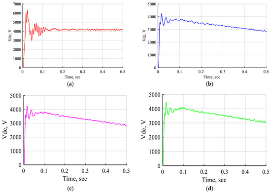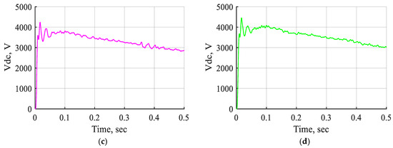 Figure 24 shows the DC voltage waveform of the STATCOM-FLC, the STATCOM-FLC-coordinated supercapacitor, and the STATCOM-ANFIS controller during the three-line-to-ground fault occurring near bus B3. The DC voltage waveform introduced a minor voltage adjustment, enhancing the system performance with the STATCOM-ANFIS controller compared to the other controllers, despite the occurrence of a three-line-to-ground fault.