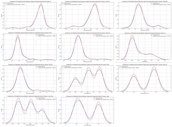 In contrast, data augmentation using Gaussian noise and SMOTE (Synthetic Minority Over-Sampling Technique), as implemented in this study, offers notable advantages due to its intuitive nature, widespread library support, and ease of application even in scenarios with limited domain knowledge [17]. Gaussian noise enhances local diversity by introducing minor random perturbations derived from a normal distribution, thereby maintaining proximity to the original data points [18]. Furthermore, by expanding the data distribution in a straightforward manner, Gaussian noise helps mitigate the risk of rapid overfitting, which is particularly problematic in extremely limited datasets [19]. SMOTE regression generates synthetic samples through linear interpolation between existing data points and their nearest neighbors. Since (x, y) pairs are generated simultaneously during interpolation, SMOTE effectively enhances local data distribution within the (input, target) space [20]. When combined, Gaussian noise and SMOTE provide additional variability beyond the direct interpolation effects of SMOTE alone. This hybrid approach creates a complementary augmentation strategy, reducing bias and overfitting risks in small-scale datasets [21]. Moreover, the integration of Gaussian noise and SMOTE represents a versatile data augmentation method that can be readily applied to a broad range of numerical datasets, including industrial process data, facility records, sensor measurements, and general numerical variables.
