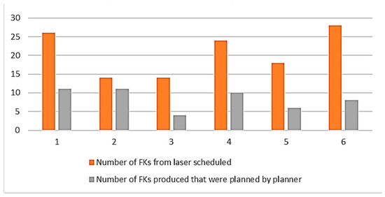The data reveal that the kit packing department frequently deviates from the planner’s schedule, creating its own production plan. According to the kit packing department, this deviation is due to the unavailability of the materials specified in the planner’s schedule. This deviation represents a significant process misalignment, where the department consistently overproduces kits that are not required, accounting for over 20% of production. These findings align with the research of Singh et al. [8], which emphasizes that deviations from production plans can exacerbate inefficiencies. This consistent process deviation prompted further investigation into the downstream departments responsible for kit packing. Specifically, the laser department was examined. The investigation confirmed that process deviation is also practiced in other departments, where the production plan is not followed. Instead, the laser department creates its own production schedule. Figure 7 reveals that the laser department’s supervisor does not communicate their production plan to the programmer or team leader. Instead, orders are issued verbally or via email, leading to unplanned production. At times, shifts start without formal orders, leading the team to produce items at random to avoid idle time. This deviation in downstream processes contributes to inefficiencies in the kit packing department.