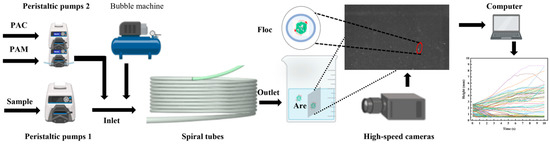 - The samples, reagents, and bubbly water were introduced into the inlet of the helical reactor at a constant rate. The samples and reagents were pumped in using peristaltic pumps, with the reagents being PAC and PAM. The flow rate of the bubbly water was controlled by adjusting the valve size.