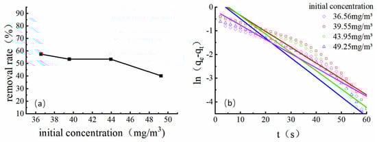 (a) Effect of initial concentration on removal rate. (b) Adsorption fitting curves at different initial concentrations.