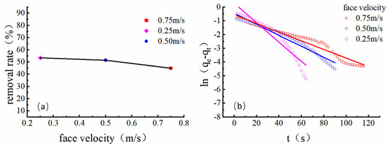 (a) Effect of different wind speedd on removal rate. (b) Adsorption fitting curves for different frontal wind speeds.