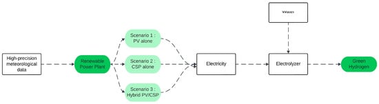 47], causing a significant drop in the solar plants’ performances. In addition, more details about the electrolyzer parameters (like the density) should be considered for a more accurate evaluation. Finally, to overlap seasonality variation in the solar irradiance and to keep a constant flow of the hydrogen production over the year, it is recommended to add a storage medium, like batteries or a biomass source, to the proposed configuration.
