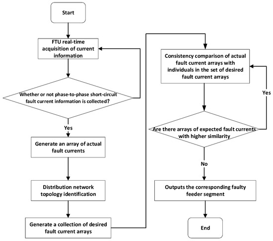 The method of constructing a similarity function to find out the physical layer desired fault current array is consistent with the characteristics of the actual fault current array in the information layer to achieve fault location. The basic flow of fault location method based on similarity of fault features is shown in Figure 2.