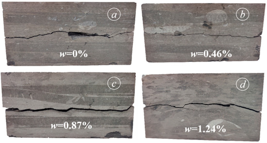 Figure 3 shows samples with different moisture contents that failed during shear creep tests using a normal stress of 2.04 MPa. The shear failure surface mainly develops and extends along the middle of the rock sample.