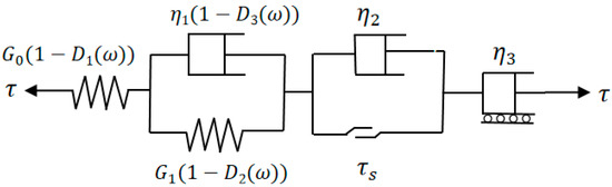 where represents all shear stress values, is the instantaneous shear modulus, is the visco-elasto-plastic modulus, and are viscosity coefficients, and is the total strain associated with various creep elements.