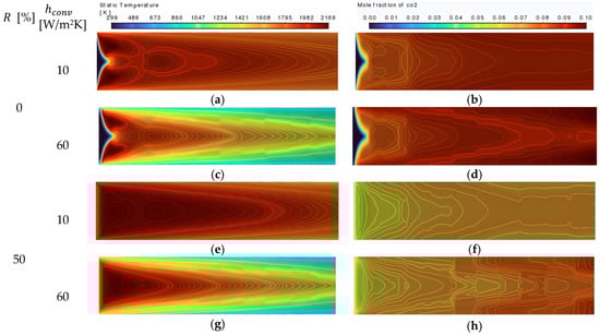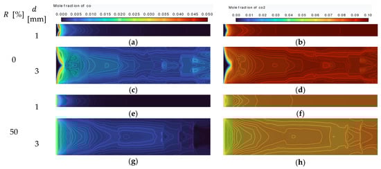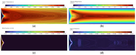 16]. Equations (1) and (2) are numerically solved to describe the flow development, attaining the conservation of mass and momentum. Meanwhile, Equations (3) and (4) are used to describe the conservation of energy and the transport of species within this flow.