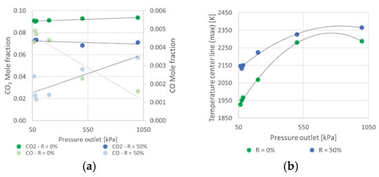 Figure 2 presents the mesh independence study results, assessing the two parameters selected. The results show that as the mesh is refined, the variation in both parameters becomes negligible, suggesting that further mesh refinement would not significantly alter the results. The average variation between the parameters evaluated for each mesh was 3.29% and 1.61% for the temperature and the CO