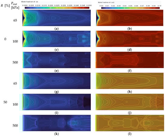 Figure 1. At the input, uniform velocity and temperature are employed. At the same time, the molar fractions of CH