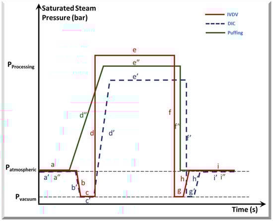 More recently, an improved version known as Intensification of Vaporization by Decompression to the Vacuum (IVDV) has emerged, demonstrating superior effectiveness as a texturizing treatment. IVDV enables a rapid pressure surge up to 12 bar in less than 1 s. This rapid compression is particularly advantageous for treating heat-sensitive food products, as it involves treatment durations of less than a few seconds under high pressure, minimizing the risk of damage to products that cannot withstand extended exposure to elevated pressures for prolonged periods [54,55].
