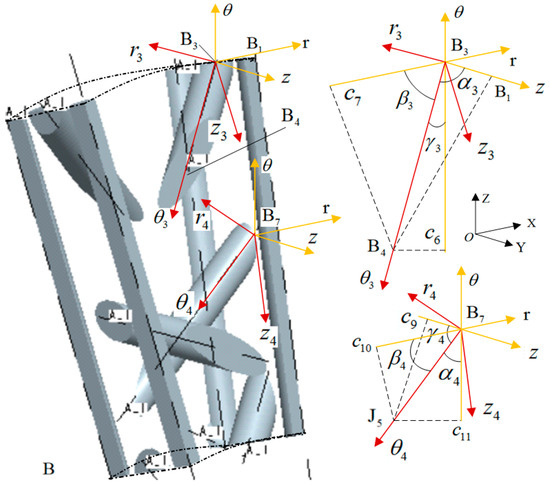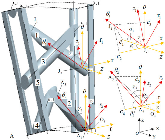 Figure 5 shows the fiber angle relationship in the inner cell A, and the coordinates of and points in the cylindrical coordinate system in Figure 5 are: