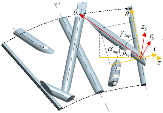 Figure 7 shows the fiber angle relationship in the upper surface cell. Similarly, according to the position relationship shown in Figure 7, the calculation formulas of the angles between axis and axis on the fiber in the upper surface cell can be obtained: