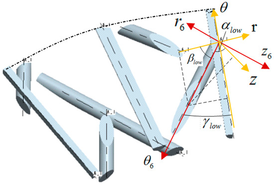 In Figure 4, the axis is parallel to the outer normal of the plane , is the angle between the axes and ; according to the angle relationship in Figure 4, we can obtain .