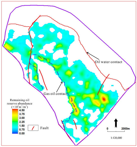 Numerical simulation of planar remaining oil reserve abundance in the Z Oilfield.
