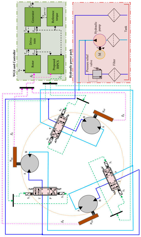 The remaining sections of this paper are organized as follows: The suggested pitch system and operating concept are discussed in Section 2. In Section 3, the dynamic models of the WGS and HPS are presented. The structure of the pitch control strategy is described in Section 4. Details on the simulation study and related discussions are provided in Section 5. Finally, Section 6 concludes with an overview of the key discoveries and outcomes.