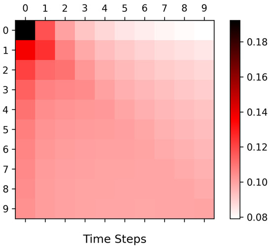 where stands for query, which is the query vector; represents key, which is the key vector; and denotes value, which is the vector of input parameter values. The vector produced by the aforementioned equation has been processed by the attention mechanism. The allocation ratio of attention weights can be visualized using a heatmap, as illustrated in Figure 1: