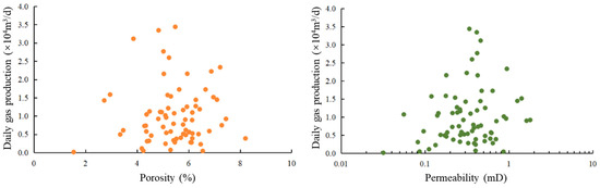 Intersection plot of daily gas production and porosity–permeability in Shan 23 member.