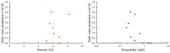 Intersection plot of daily water production and porosity–permeability in Shan 23 member.
