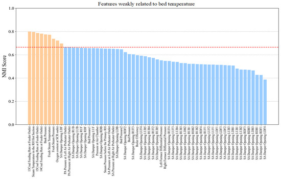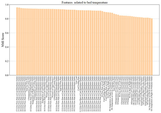 Step 3: Feature selection. The prediction target (i.e., bed temperature) is influenced by a large number of factors and variables, as shown in Table 1. Identifying the most relevant variables in such a vast dataset is challenging, but critical for improving model prediction accuracy and interpretability. To address this issue, Normalized Mutual Information (NMI) is applied to identify the variables that are most highly correlated with bed temperature. This step reduces model complexity and improves model validity by focusing on the major features.