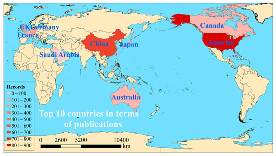 3.2. Top 10 Countries/Regions in Terms of Total Number of Publications