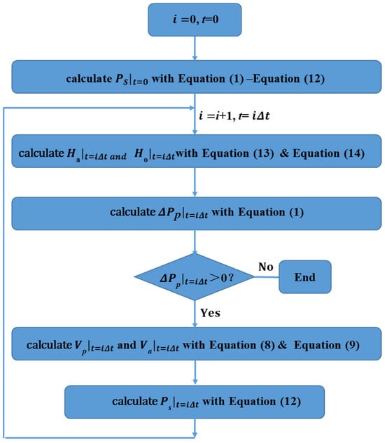 By iteratively solving Equations (13) and (14) and repeating the calculation process above, we obtain the swab pressure in A-annulus at any time after packer unsetting with Microsoft Visual Basic 6.0 programming. The workflow is shown in Figure 3.