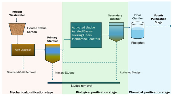 Given their significance and the many ecological risks they pose, this review focuses on the removal of micropollutants, specifically pharmaceutical (PCs) and microplastic (MP) contaminants, from wastewater. The objective is to identify and categorize the major classes of pharmaceuticals contributing to wastewater and to provide an overview of the methods being explored to implement a fourth purification stage in WWTPs. Biological, chemical, and physical purification processes are reviewed, and their characteristics are discussed. The occurrence of the most detected PCs in various water sources and regions, as well as the harmful effects of these substances on the environment, ecosystems, and human health, are also examined in the literature.