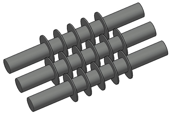 The main parameters of the hydrogen-based shaft furnace are a total height of 23 m and an upper diameter of 5 m; the outer shell of the furnace body is made of steel material. In the hydrogen-based shaft furnace, it is necessary to transport the ore pellet and crush the bonded furnace material; therefore, the loose rollers need to be installed. Loose rollers are fragile components in the hydrogen-based shaft furnace and require stress and wear analysis. The loosening roller is equipped with an inner shaft and fan blades, as shown in Figure 3. The specific parameters of the hydrogen-based shaft furnace and its loosening roller are shown in Table 1. From the table, it can be seen that the pellets are added to simulate the iron ore/DRI particles in the simulation calculation. Figure 4 shows the profile of the particles, and the specific parameters of the iron ore/DRI particles are shown in Table 2.