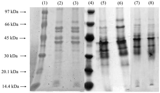 - Bradford, M.M. A Rapid and Sensitive Method for the Quantitation of Microgram Quantities of Protein Utilizing the Principle of Protein-Dye Binding. Anal. Biochem. 1976, 72, 248–254. [Google Scholar] [CrossRef]
