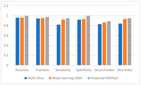 The Deep Learning UNet and the Multi-Otsu algorithms where implemented using the same dataset as the proposed method for the purpose of comparison [25].