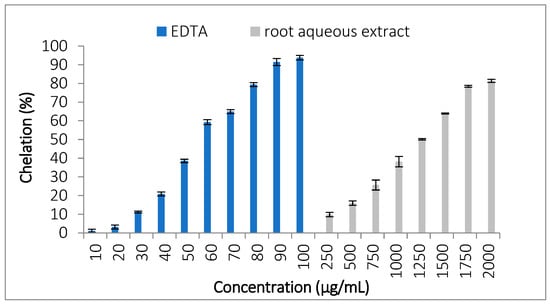 Chelating activity of EDTA and C. caeruleus L. root aqueous extract.