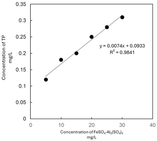 The correlation between the concentration of FeSO4-Al2(SO4)3 and TP in water.