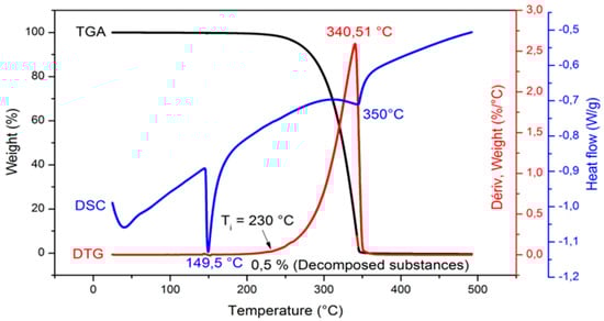 The thermal stability of haloperidol was evaluated under conditions ranging from 20 to 500 °C with thermo-analytical data collected at a heating rate of 5 °C/min, as illustrated in Figure 6.