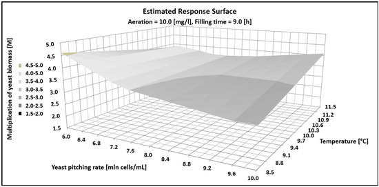 The purpose of this paper was to investigate how variations in key fermentation parameters affect yeast growth and viability under large industrial plant conditions. This study was based on the extensive use of statistically designed experiments and a response surface methodology (RSM). A similar approach has been applied by other authors to optimise processes in breweries [23,24,25], particularly to examine the effects of variations in the fermentation temperature, original gravity and pitching rate. In our previous experiment [26], we successfully applied the RSM methodology to optimise fermentation process parameters ensuring that acetaldehyde and DMS concentrations, along with other volatile components, resulted in significantly better quality in fermented beer.