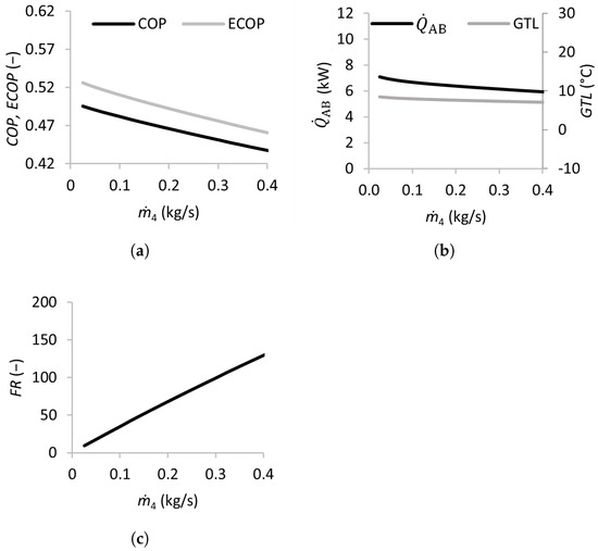 Some important performance parameters were calculated, including the coefficient of performance , the exergetic coefficient of performance , the flow ratio , and the gross temperature lift .