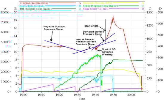 The slope inversion method avoids the problem of calculating the net pressure and has been applied with good results in some fields [30], the implementation of which is shown in Figure 6. However, its prediction performance deteriorates in certain complex scenarios. For instance, when there are continuous fluctuations in pressure, the model tends to produce a higher rate of false alarms. This results in an ineffective warning system that fails to provide reliable information for predicting sand screenout.