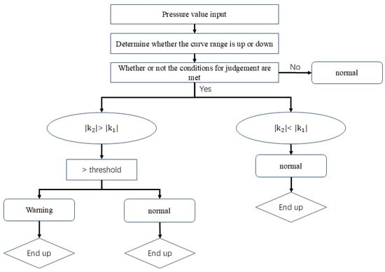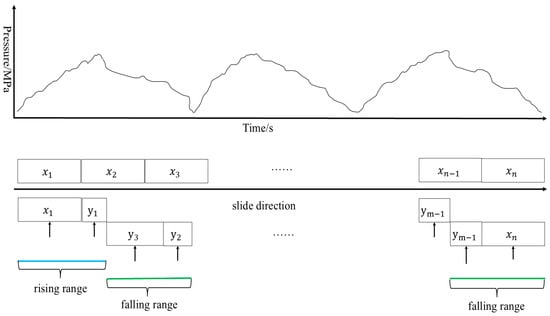 The pressure curve uses a sliding window algorithm to move the sampling for the calculation, and after calculating the slope of the model for classification, if the results are normal, then skip the sliding region; if the results are not normal, then it is sliding in turn; and if several consecutive sliding regions belong to the same type of superimposed display, then the sliding algorithm mechanism is applied as shown in Figure 8.