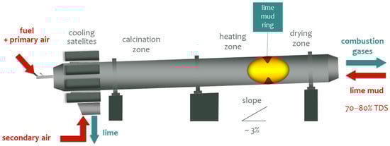 The mud progressively passes through the drying, heating, and calcination zones before the lime is discharged in the cooling satellites, as depicted in Figure 4.