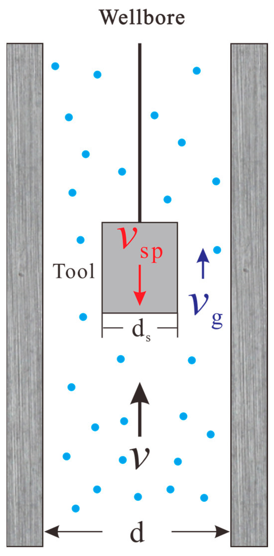 is the fluid flow rate in the wellbore, m/s; is the fluid mass flow rate, kg/s; is the fluid volume coefficient; vsp is the tool movement velocity, m/s; is the tubing column fluid density, kg/m3; d is the tubing inner diameter, m; and ds is the tool diameter, m.