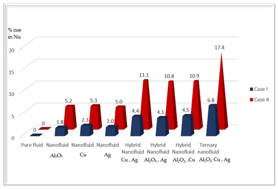 Tri-hybrid nanofluids represent a specialized class of nanofluids containing three distinct types of nanoparticles suspended in a base fluid. These nanofluids have demonstrated remarkable effectiveness in various applications, particularly in magnetohydrodynamic (MHD) flows. In the fields of drug delivery and tissue engineering, tri-hybrid nanofluids play a crucial role in regulating temperature during targeted hyperthermia treatments. They can locally activate therapeutic agents through chemical reactions within the fluid and ensure consistent drug release profiles via controlled mass diffusion. Research highlights that tri-hybrid nanofluids enhance drug delivery efficiency by improving the solubility of hydrophobic drugs and enabling precise targeting through functionalization with ligands or antibodies. In the aerospace and defense sectors, MHD tri-hybrid nanofluids are highly effective in managing rapidly changing thermal loads in critical components such as turbine blades, avionics, and rocket engine nozzles. Their ability to maintain uniform heat flux and regulate mass diffusion allows these components to operate within safe temperature ranges despite fluctuating conditions. Due to their diverse applications across multiple fields, researchers have extensively studied ternary nanofluid flows. The study by Oweidi et al. [32] investigates the effects of ternary nanoparticles on heat transfer and fluid movement, focusing on the thermal properties of tri-hybrid nanofluids. The nanofluids analyzed in this research consist of aluminum oxide , copper oxide , silver , and water as the base fluid. The results indicate that the rate of entropy generation increases with rising magnetic field strength and radiation parameters. Conversely, entropy production decreases as the Brinkman number and Hall current parameter become more pronounced. In their study, Alshahrani et al. [33] assessed the impacts of heat radiation, slip boundary conditions, and uniform magnetic strength on the flow of three different types of nanofluids over a spinning disk. This research combined aluminum oxide , carbon nanotubes , and zirconium dioxide to create tri-hybrid nanocomposites. This study found that an increase in the slip coefficient significantly reduces the velocity field, while higher values of the heat source term and thermal radiation parameter enhance the thermal profile. Vinutha et al. [34] reviewed the implications of the Soret effect, heat sink/source, and the Dufour effect on the flow of tri-hybrid nanofluids across a wedge. Their findings indicate that altering the dynamic wedge parameter reduces the temperature profile while increasing the magnetic constraint boosts velocity. Furthermore, adjusting the heat source/sink, Soret, and Dufour parameters leads to higher temperature and concentration profiles. A study by Madhukesh et al. [35] analyzed the performance of tri-hybrid nanofluid flow in an inclined leaky cylinder/plate system. The results showed that plate geometry performed better than cylindrical geometry when maintaining a stable volume fraction. The rate of heat transfer in the cylinder increased from 2.08% to 2.32%, while in the plate, it rose from approximately 5.19% to 10.83% as the porous material fraction increased from 0.1 to 0.5. Several researchers [36,37,38,39] have conducted studies on ternary hybrid nanofluids, focusing on convective heat transport and various geometric configurations. Gopinath Mandal [40] established the presence of a double solution in radiative mixed convective tri-hybrid nanofluid MHD flow within a Darcy–Forchheimer porous medium over a rapidly diminishing surface. This study also considered the influence of velocity and thermal slip, as well as surface suction effects. An analysis was conducted on three fluid categories: -mono nanofluid, -/-hybrid nanofluid, and --/-tri-hybrid nanofluid, across various flow fields. The primary objective of the study by Khan et al. [41] was to investigate the flow and heat transfer characteristics of a blood-based composite nanofluid composed of , , and in a Sutterby fluid over a bidirectional porous stretching surface. The graphical results indicate that, in the presence of the Darcy–Forchheimer effect, there is a significant reduction in fluid velocity for both tri-hybrid and unary nanofluids. A similar trend is observed for the slip parameter. Jamrus et al. [42] performed numerical computations to explore heat transfer and fluid flow dynamics in the stagnation region of mixed convection involving ternary hybrid nanofluids with thermal stratification. Their study examined the effects of magnetohydrodynamics, velocity slip, and a permeable sheet capable of stretching or shrinking. Chandel et al. [43] investigated a novel ternary nanofluid dispersed in a shear-thinning fluid (ethylene glycol) over an exponentially stretching sheet. The fluid’s rheology was analyzed using a power-law fluid model, with flow influenced by an inclined magnetic field. The results demonstrated that increasing the nanoparticle volume fraction enhances both fluid temperature and Nusselt number distributions. The study by Saleem et al. [44] examined the properties of a Casson ternary nanofluid over a stretching sheet under Thomson and Troian slip conditions, while also considering the effects of electro-magnetohydrodynamics (EMHD). The findings indicated that the temperature of the ternary Casson nanofluid increased with higher concentrations of silver, copper, and titanium dioxide nanoparticles.