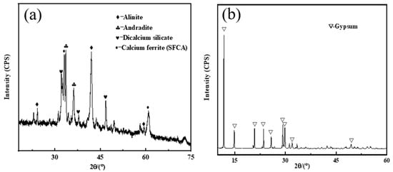 XRD diagram of (a) steel slag and (b) desulfurization gypsum.