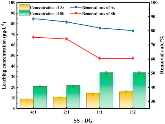 3.3. Effects of the Ratio of Steel Slag and Desulfurization Gypsum on the Removal of Arsenic and Antimony