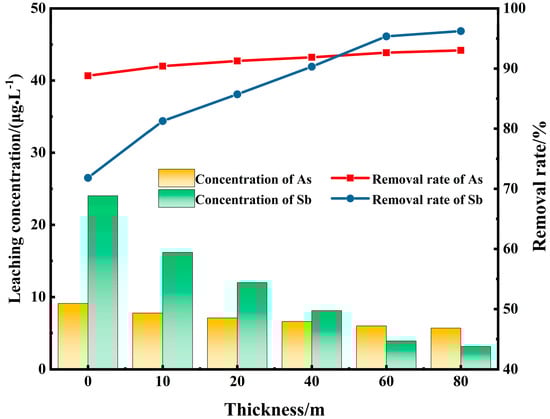 Effects of the thickness of permeable reactive barrier on the removal efficiency of arsenic and stibium.
