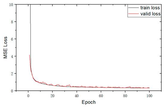 During the training process, the mean squared error (MSE) was used to define the loss function during the training process. To enhance the model’s accuracy, we conducted extensive experiments to fine-tune the hyperparameters, including the learning rate, batch size, and number of epochs. The optimal combination was found to be a learning rate of 0.001 and a batch size of 128, which resulted in the lowest loss for the validation dataset. Additionally, we employed the rectified linear unit (ReLU) activation function for all hidden layers to introduce nonlinearity while avoiding the vanishing gradient problem. We experimented with different combinations of batch size and learning rate. The optimal combination was found to be a batch size of 128 and a learning rate of 0.001, which resulted in the lowest loss for the test data set. To ensure the robustness and generalizability of the proposed model, several measures were implemented during the data generation and model training phases. First, the input parameters for the training data were randomly generated within specified ranges, and a large-scale dataset was created to minimize the risk of overfitting. Second, L2 regularization with a coefficient of 0.0001 was incorporated into the loss function during model training to control the complexity of the neural network and prevent overfitting. Finally, to rigorously evaluate the model’s stability and generalization ability, a 5-fold cross-validation was performed. The results showed consistent performance across all folds, with an average MSE of 0.3538 for the training set and 0.3905 for the validation set, indicating the model’s high reliability and robustness. The train loss and valid loss for each epoch are shown in Figure 5.