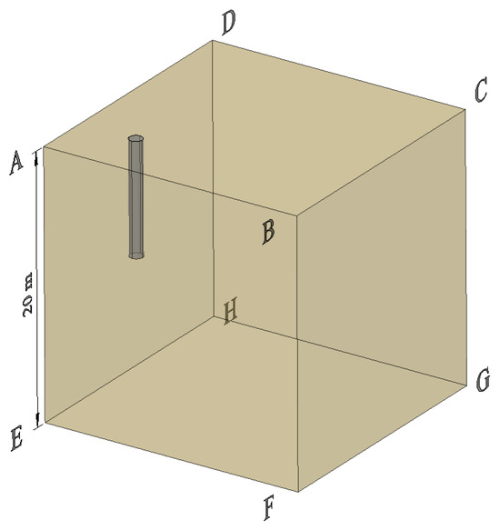 Given that the experimental model meets the symmetry conditions, a quarter of the transmission tower foundation structure is selected as the geometric model for calculation and analysis, as shown in Figure 2. Taking into account the effects of global climate change and incorporating prior surface temperature monitoring data from the study area [26], the temperature variation in the face ABCD is represented as: