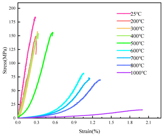 17], who categorized the thermal response into four regimes (20–200 °C, 200–400 °C, 400–600 °C, and 600–1000 °C), observed that the tensile strength and fracture toughness exhibited a marked degradation beyond 200 °C, while the compressive strength and elastic modulus demonstrated a progressive deterioration when exceeding 400 °C. Yang et al. [
