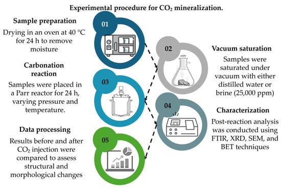Generalized flowchart of the CO2 mineralization experimental procedure.