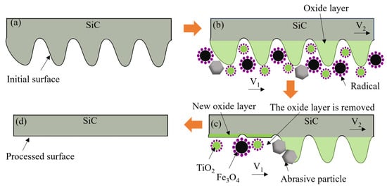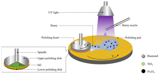 - Wang, W.; Zhang, B.; Shi, Y.; Ma, T.; Zhou, J.; Wang, R.; Wang, H.; Zeng, N. Improvement in chemical mechanical polishing of 4H-SiC wafer by activating persulfate through the synergistic effect of UV and TiO2. J. Mater. Process. Technol. 2021, 295, 117150. [Google Scholar] [CrossRef]