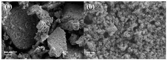 Scanning electron microscopy (SEM) was used to observe the surface morphology of the samples. (GeminiSEM 300, ZESS Company, Oberkochen, Germany). Conductive tape was attached to the sample holder, and the powder sample was evenly spread onto the tape. The morphology was observed after the sample was treated with gold sputtering.
