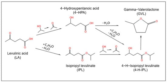 - Hijazi, A.; Khalaf, N.; Kwapinski, W.; Leahy, J. Catalytic valorisation of biomass levulinic acid into gamma valerolactone using formic acid as a H 2 donor: A critical review. RSC Adv. 2022, 12, 13673–13694. [Google Scholar] [CrossRef]